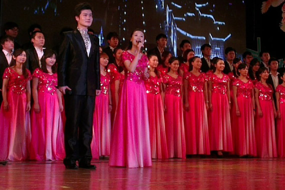 清遠(yuǎn)市慶祝建軍85周年“軍民共籌鋼鐵長城”大型晚會中代表順德部隊(duì)合唱團(tuán)領(lǐng)唱《我的祖國》等