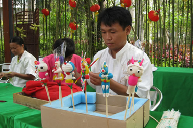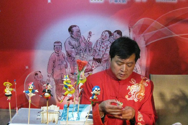 面塑,俗稱面花、禮饃、花糕、捏面人。它以糯米面為主料,調(diào)成不同色彩,用手和簡(jiǎn)單工具,塑造各種栩栩如生的形象。舊社會(huì)的面塑藝人“只為謀生故,含淚走四方”,挑擔(dān)提盒,走鄉(xiāng)串鎮(zhèn),做于街頭,深受群眾喜愛,但他們的作品卻被視為一種小玩意兒,是不能登上大雅之堂的。如今,面塑藝術(shù)作為珍貴的非物質(zhì)文化遺產(chǎn)受到重視,小玩意兒也走入了藝術(shù)殿堂。捏面藝人,根據(jù)所需隨手取材,在手中幾經(jīng)捏、搓、揉、掀,用小竹刀靈巧地點(diǎn)、切、刻、劃、塑成身、手、頭面,披上發(fā)飾和衣裳,頃刻之間,栩栩如生的藝術(shù)形象便脫手而成。