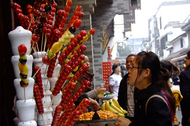 冰糖葫蘆是中國傳統(tǒng)美食,它是將野果用竹簽串成串后蘸上麥芽糖稀,糖稀遇風(fēng)迅速變硬。北方冬天常見的小吃,一般用山楂串成,糖稀被凍硬,吃起來又酸又甜,還很冰。兒歌《冰糖葫蘆》是90年代兒童耳熟能詳?shù)母枨?002年的電影《冰糖葫蘆》講述著一幕幕啼笑皆非又妙趣橫生的世俗故事。