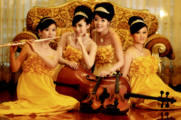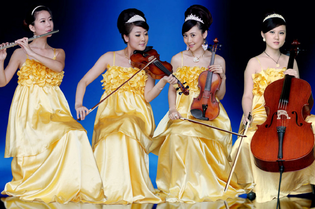 “舞動天使古典高雅重奏組合(Lovely Angel)”:由4個星海音樂學(xué)院的美女高才生組成. 不僅專業(yè)一流,形象美麗動人,還有著對音樂永不放棄,不斷創(chuàng)新的執(zhí)著,這是一幫對音樂有著共同的追求的可愛女生.