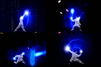 光耀未來 光耀未來是一個(gè)大型的視頻互動(dòng)全息舞蹈,最早出現(xiàn)在中國動(dòng)漫節(jié)上 采用全息投影將視頻投…